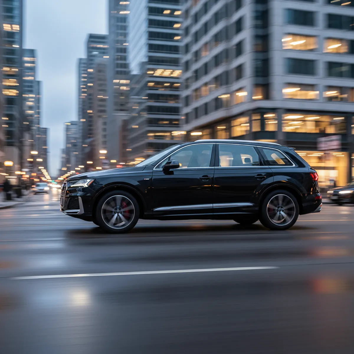 Elektrycznie otwierana tylna klapa, rozkładane fotele oraz pojemny bagażnik sprawiają, że Audi Q7 jest gotowe na każdą podróż – od rodzinnych wakacji po ekskluzywne transfery VIP.