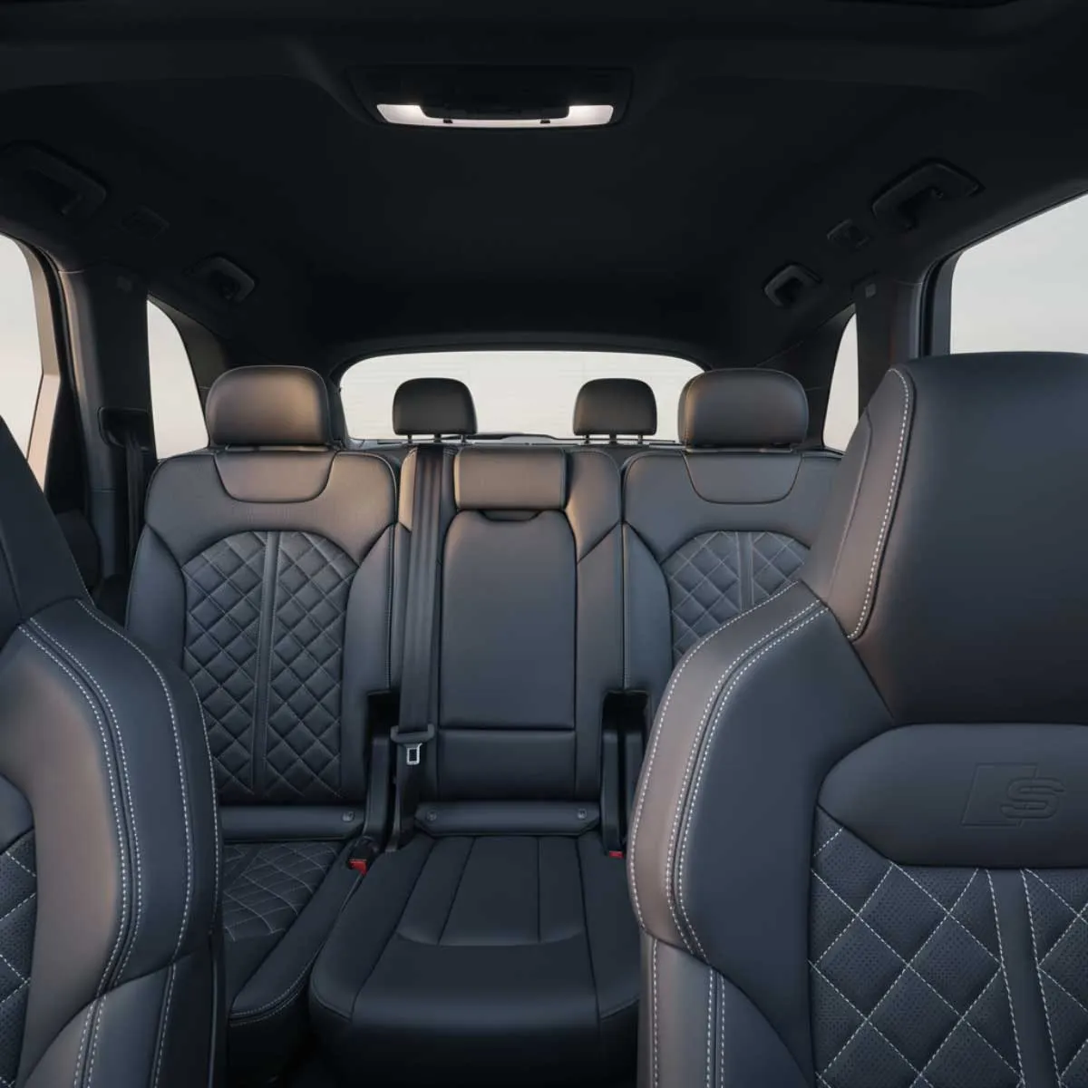 W kabinie Audi Q7 znajdziesz najwyższej klasy materiały wykończeniowe, skórzane, wentylowane i podgrzewane fotele oraz przestrzeń nawet dla siedmiu osób.